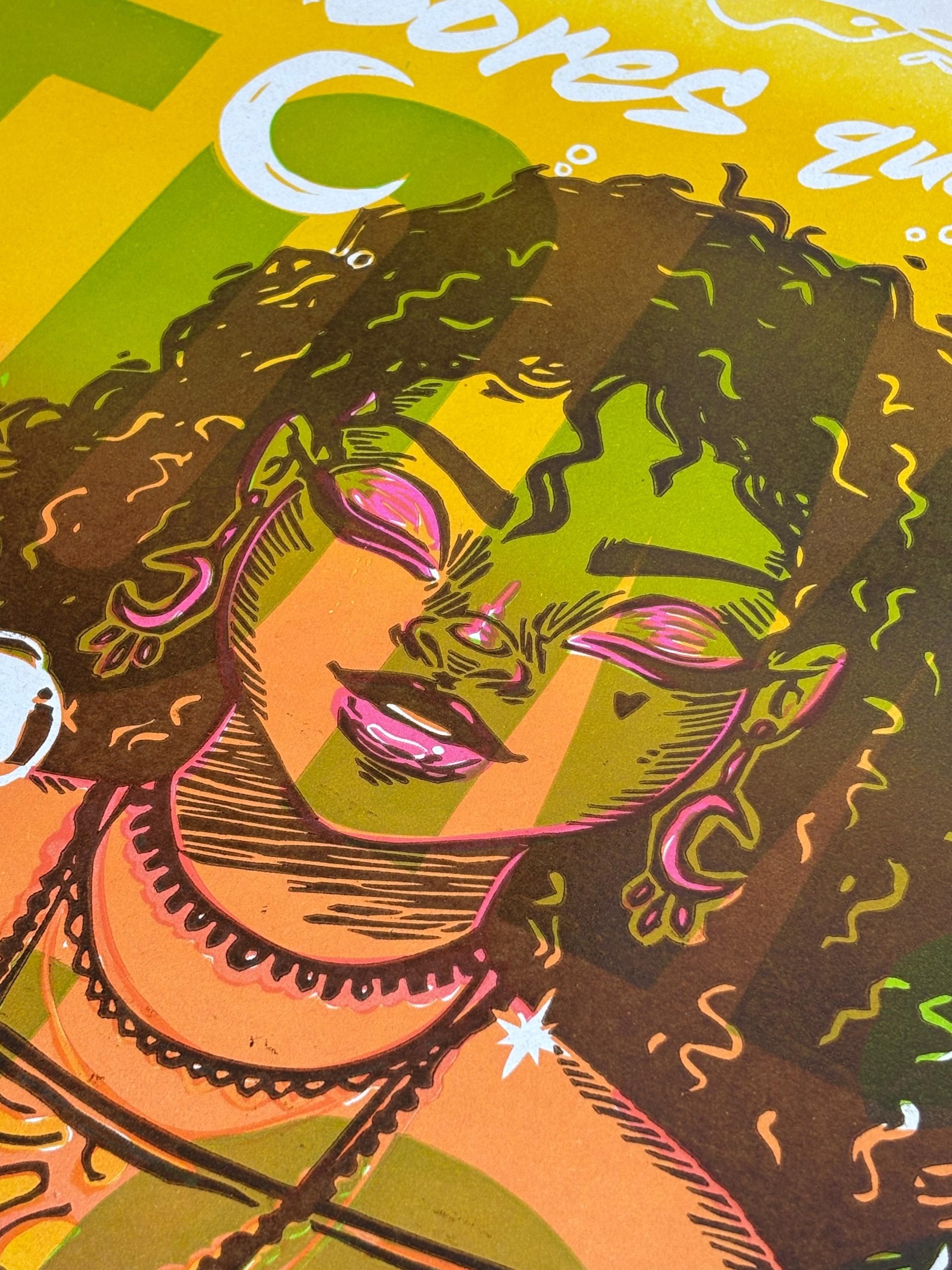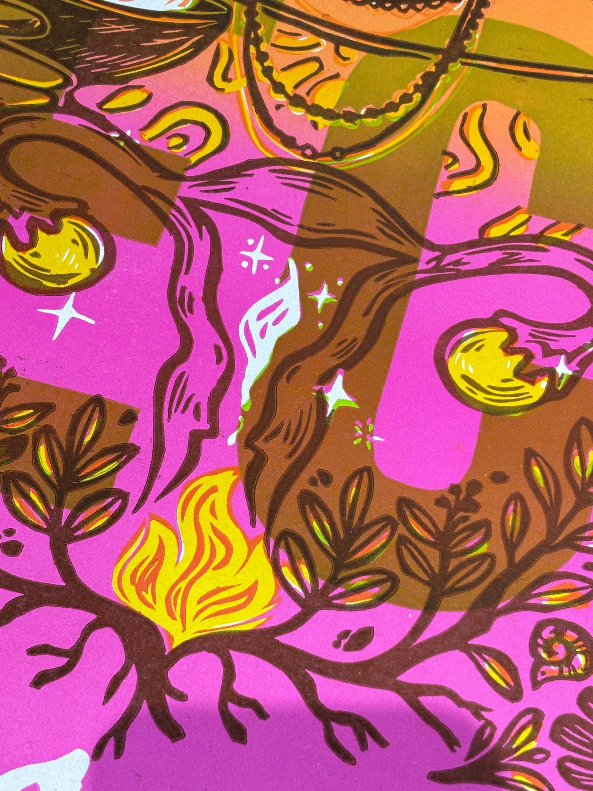 Poster printed on 150-gram Earth Pact paper, created from a linocut carved by "Resident Artists," and printed on machines from the 1870s and 1890s.
