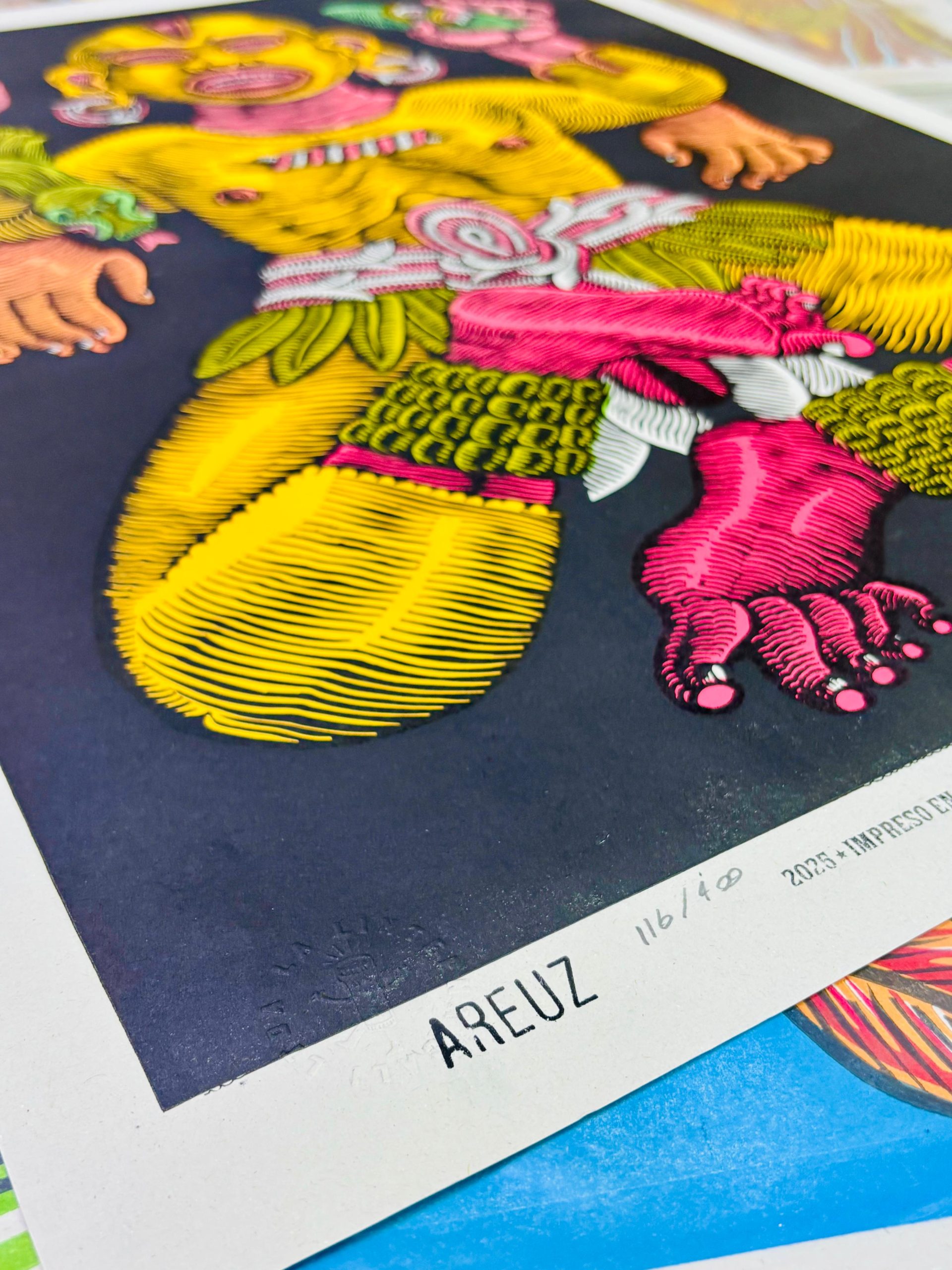 TINTA JAGUAR (Jaguar Ink) is a collection of hand-carved linocuts that roar from the core of Latin American graphic art. For this first edition, six Mexican artists trace the path of the Jaguar’s symbolic power—an ancestral emblem of resistance, vision, and an indomitable heart.